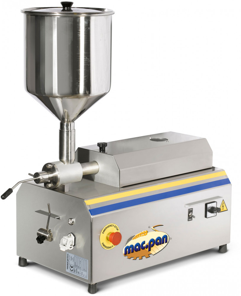 Шприц-дозатор Mac.Pan Mde используется на предприятиях пищевой промышленности и общественного питания, в пекарнях и кондитерских для наполнения кондитерских изделий начинкой из шоколада, меда, джема и различного вида кремов, кроме масляного крема и взбитых сливок.