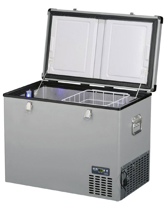 Данная модель относится к новой серии портативных холодильников линейки «Steel Double Door». Он безусловно понравится любителям охоты и рыбалки. Холодильники данной линейки имеют два независимых отделения. Каждое отделение оснащено отдельной крышкой и отдельным управлением. При этом пользователь может сам установить необходимый температурный режим для каждого из отсеков. Поэтому один из них вполне может выступать в качестве морозилки, а другой в качестве обычного холодильника. Общий объём двух таких отсеков составляет 92 литра, а температурный диапазон от +10 до -18 градусов. Для необходимости быстрого охлаждения продуктов в холодильнике доступна функция «турбо». Максимальную экономию обеспечивает режим «ECO».