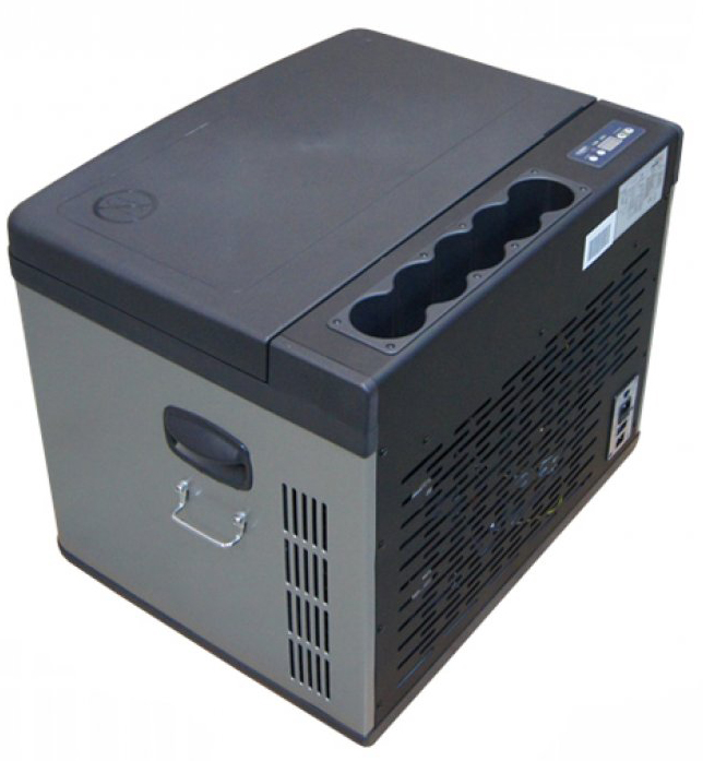 Внешней вид этой модели отличается особым дизайном. Для удобства в корпусе сделаны подстаканники. По бокам установлены металлические скобы для крепления холодильника в автомобиле ремнями. Холодильник имеет объем в 50 литров. В нём с лёгкостью помещаются не только бутылки объёмом 1.5 и 2 литра в вертикальном положении, но и пятилитровые ёмкости. Испаритель находится за пластиковой поверхностью, которая защищает его от протирания и случайного повреждения.