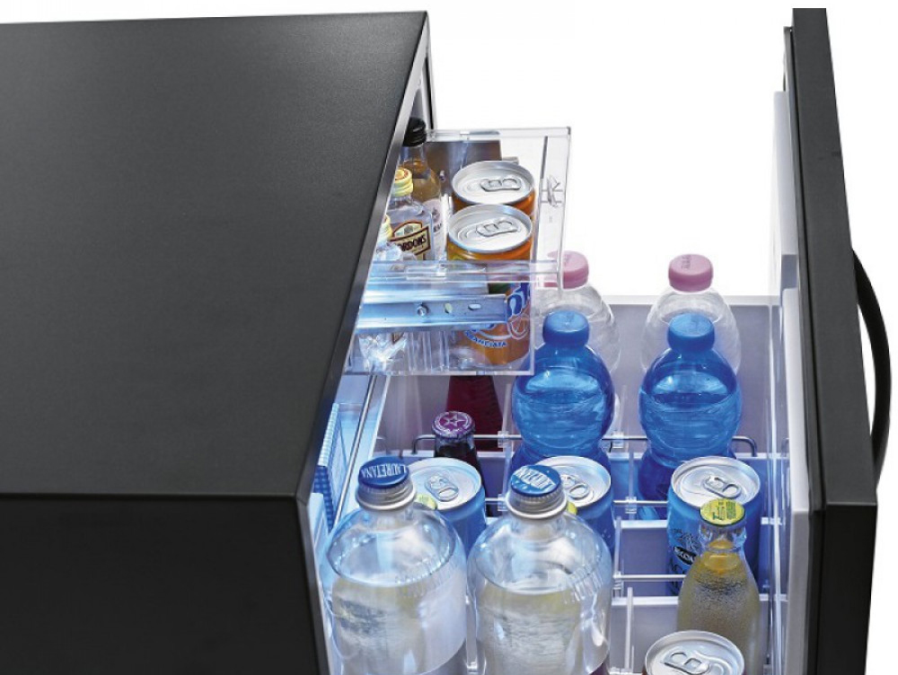 Минибар Indel B KD50 Drawer устанавливается в отелях, офисах и в домашних условиях для охлаждения и кратковременного хранения скоропортящихся продуктов и напитков. Новый выдвижной дизайн.