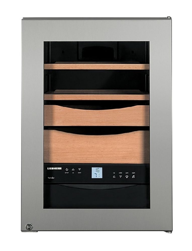 Шкаф для сигар Liebherr ZKes 453 стабильно поддерживает температуру на уровне от +16 до +20 градусов, создавая идеальные условия для хранения ваших сигар. При своем относительно небольшом весе 33 кг модель имеет объем 39 л и может крепиться как на стене, так и на столе. В систему интегрировано светодиодное освещение.