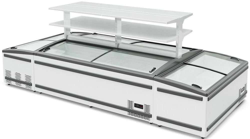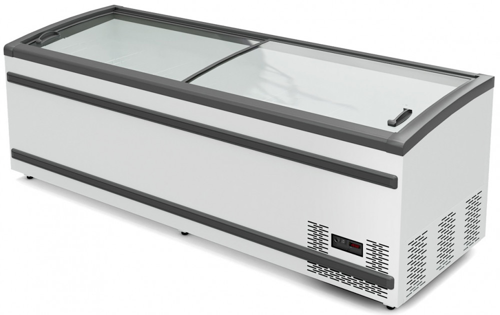 Ларь-бонета с раздвижными створками «Корсика» гармонично впишется как в небольшой продуктовый магазин, так и в огромный зал торгового центра.