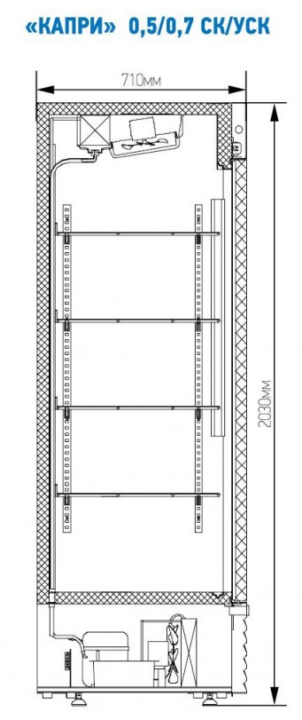 Холодильный шкаф Марихолодмаш Капри 0,7СК среднетемпературный предназначен с для кратковременного хранения, демонстрации и продажи предварительно охлажденных до температуры охлаждаемого объёма пищевых продуктов и напитков.