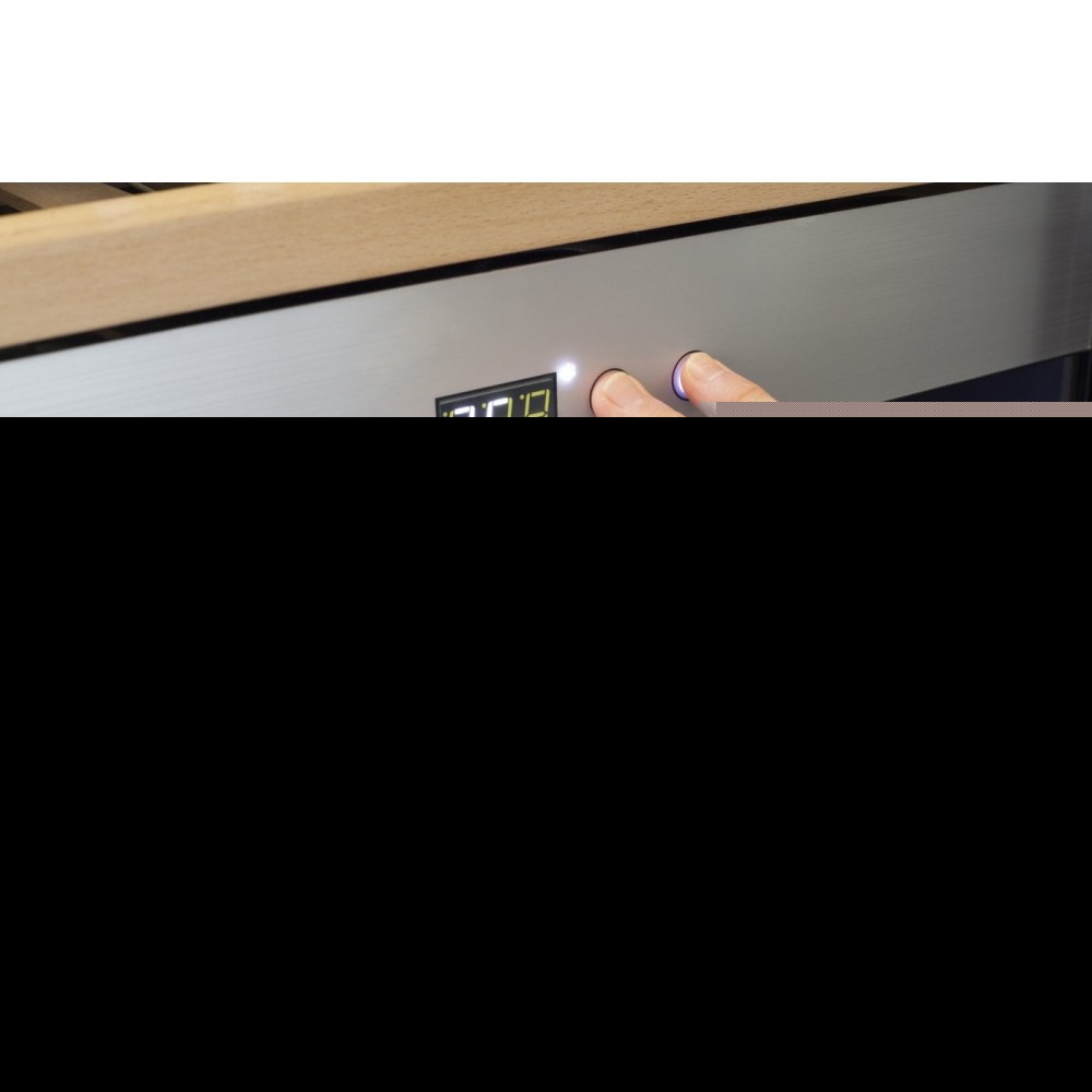 Семь съемных полок из дерева предназначены для правильного хранения вина: бутылки кладутся горизонтально (вместительность – 38 бутылок). Деревянные полки оборудованы фиксаторами от самопроизвольного выдвижения и компенсируют механические воздействия компрессора и вентилятора. Благодаря функции WiFi Smart Control, через мобильное приложение CASO-APP, можно удаленно следить за параметрами вашего винного шкафа и менять их в случае необходимости. Управление осуществляется при помощи двух сенсорных панелей. Регулировка температурных показателей с шагом в 1°C происходит нажатием « ∧ » и «∨». Управление внутренним освещением возможно при помощи кнопки «Свет». Чтобы прочитать этикетку, не нужно открывать дверь холодильника — светодиодные панели включаются кнопкой на внешней панели управления.