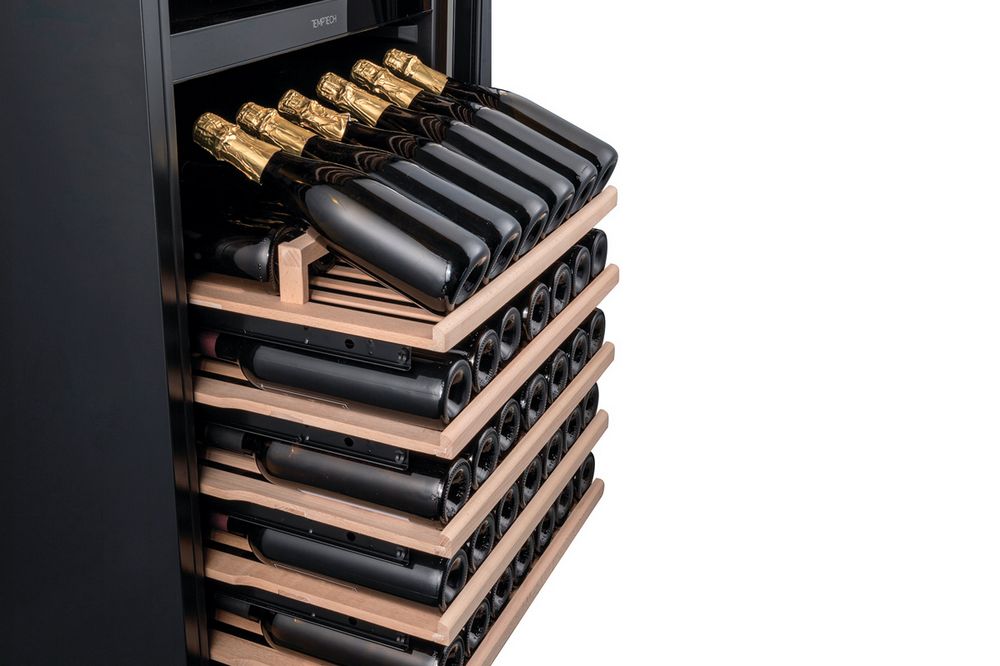 Двухзонный винный шкаф Temptech E1000DRB с точностью имитирует условия настоящего винного погреба.