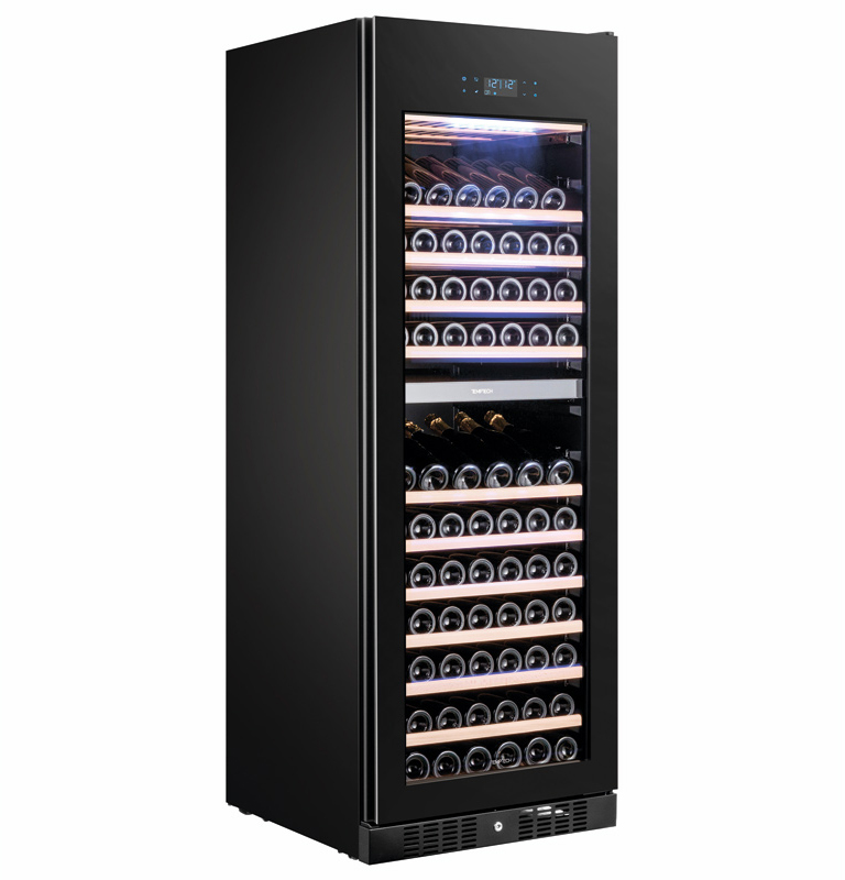 В винном шкафу с двумя температурными зонами у Вас есть возможность хранить вино при двух разных температурах, например, белое и игристое вино при температуре 8 ° C, а красное — при температуре 12 ° C. Две температурные зоны физически разделены в середине винного шкафа — холодная зона находится вверху винного шкафа, а теплая — внизу.