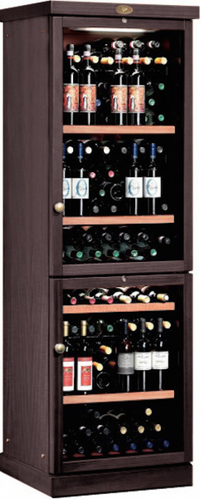 Модель оснащена статической системой охлаждения на базе компрессора SECOP (Danfoss), которая кроме охлаждения вина еще и сохраняет оптимальную влажность внутри камеры. Комплектуется шкаф девятью деревянными полками.