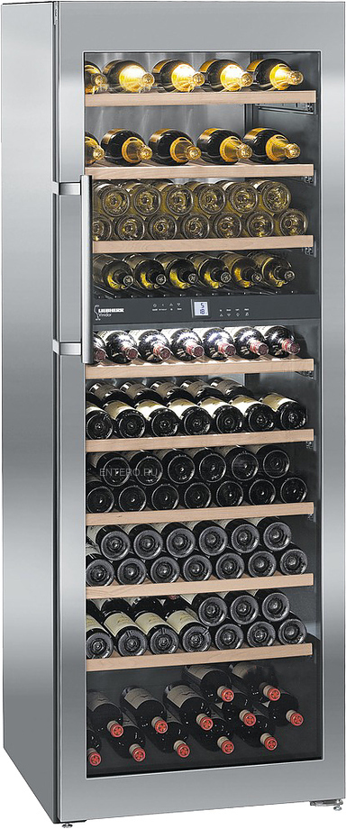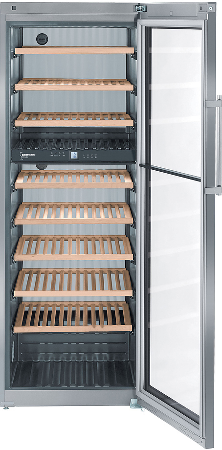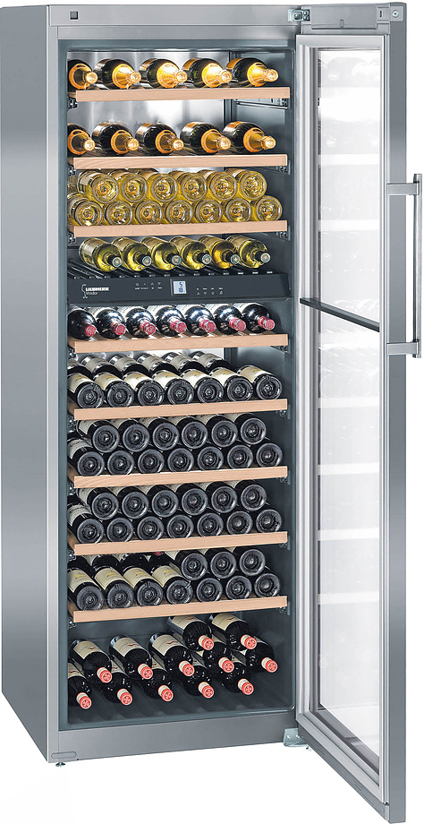 Винный шкаф Liebherr WTes 5972 серии Vinidor подходит для хранения больших запасов различных вин в условиях идеальной температуры сервировки. Комбинирование температурных уровней достигается за счет использования специальных компонентов. В верхней зоне при температуре +18 °C оптимально хранить, например, красные вина. Нижняя зона с температурой +5 °C особенно подходит для поддержания постоянной температуры хранения игристых вин или шампанского.