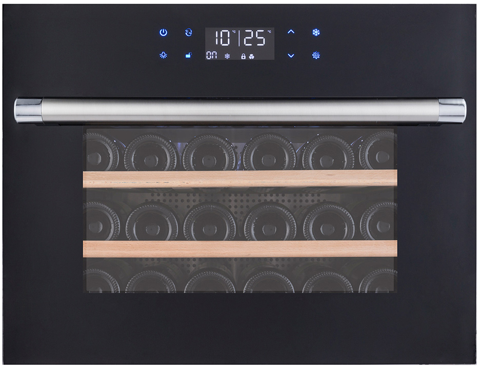 Винный шкаф обладает низким энергопотреблением и эффективным охлаждением с низким уровнем вибрации.
