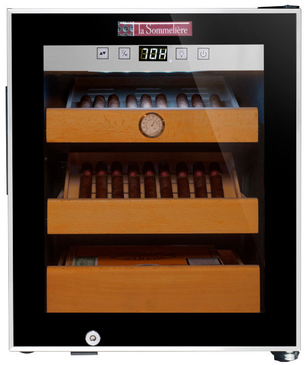 Cигарный шкаф La Sommeliere CIG251 позволяет хранить 100-250 сигар в наиболее подходящих условиях. Внутри шкафа поддерживаются оптимальные температура и влажность, при которых сигары сохраняют качество и не портятся. Дверца с антиультрафиолетовым стеклопакетом предохраняет содержимое от воздействия солнечного света.