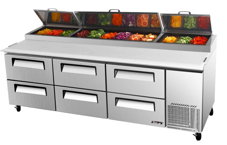 Стол для пиццы Turbo Air CTPR-93-2D-6 предназначен для обработки ингредиентов, используемых для приготовления пиццы, охлаждения и кратковременного хранения продуктов на предприятиях общественного питания и торговли.Характеристики