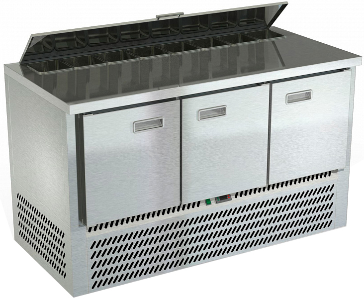 Стол для салатов Техно-ТТ СПН/С-127/30-1406 предназначен для обработки ингредиентов, используемых для приготовления салатов, охлаждения и кратковременного хранения продуктов на предприятиях общественного питания и торговли.