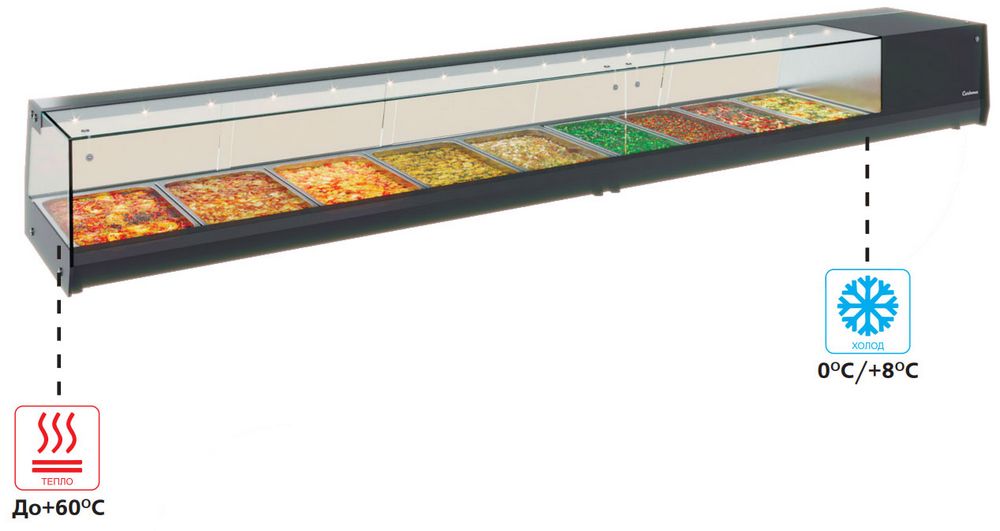 Барная холодильная витрина Полюс AC37 SM 1,5-1 в кубическом дизайне предназначена для кратковременного хранения, презентации и продажи бутербродов, мяса, птицы, салатов, десертов, в магазинах, кафе, барах, ресторанах.