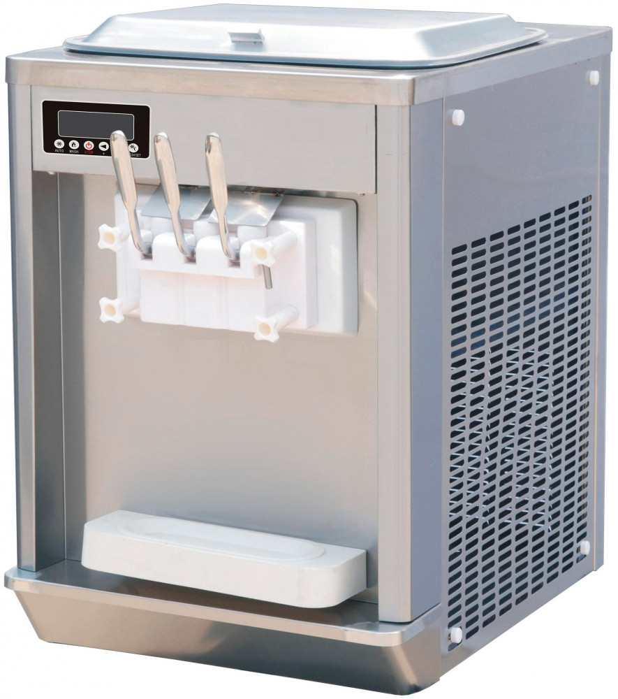 Оптимизированная панель управления обеспечивает эффективную работу даже на открытом воздухе. Дозатор на три рожка позволяет приготовить одновременно две смеси, различные по вкусу. Чтобы мороженое еще дольше оставалось свежим, возможны предварительное охлаждение, а также режим ночного хранения. Модель устанавливается на стол и обладает компактными размерами, поэтому ее удобно транспортировать. Корпус выполнен из нержавеющей стали, что гарантирует долгий срок службы и сохранение внешнего вида.