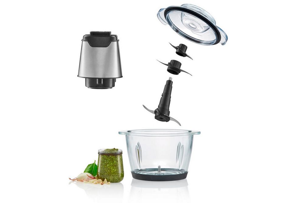 Прозрачная стеклянная чаша делает конструкцию особенно приятной в использовании. Со временем она не потускнеет, не станет мутной. Стекло не впитывает запахи и легко очищается от любых загрязнений. Объём 1,2л позволяет измельчать крупные порции продуктов.