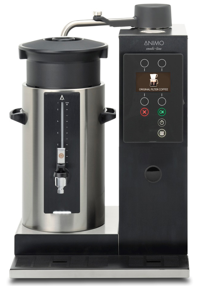 Капельная кофеварка Animo CB 1х5W L используется в офисах, гостиницах и заведениях общепита, где применяется принцип самообслуживания. С ее помощью можно приготовить свежий кофе, или нагреть воду для заваривания чая.