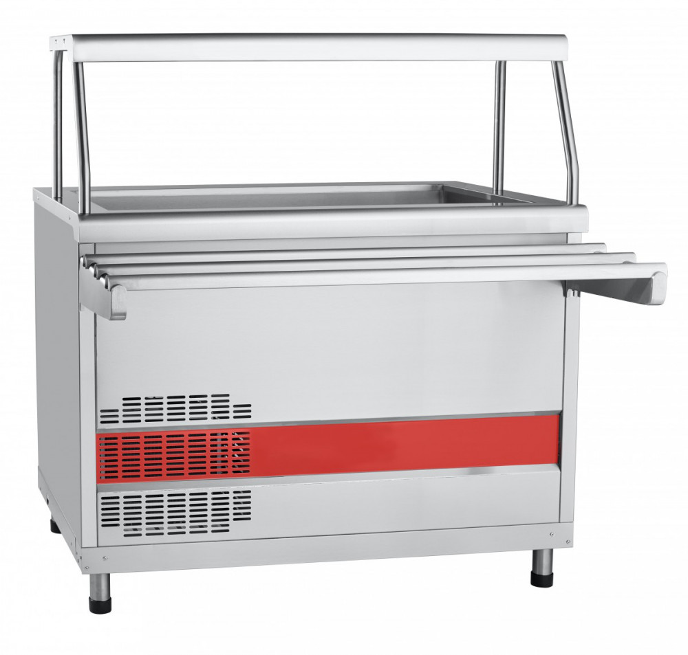Полка над прилавком служит для выкладки неохлаждаемых порционных блюд или напитков и имеет лампу подсветки.