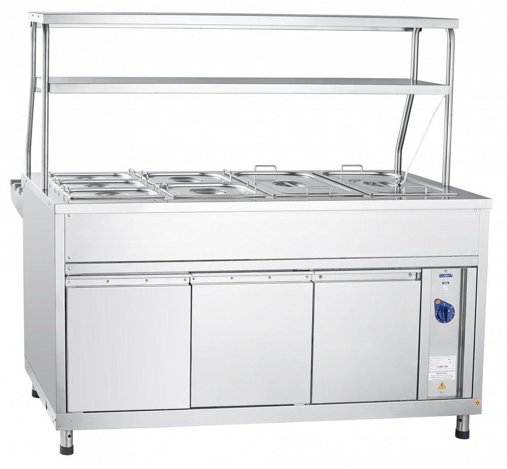 Мармит вторых блюд паровой Abat Аста ЭМК-70КМ-01 с подогреваемыми полками (21000802501) с подогреваемыми полками используется для непродолжительного сохранения блюд в гастроёмкостях в горячем состоянии, а также для раздачи их потребителям.