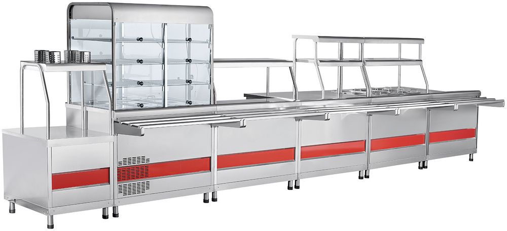 Цена линии раздачи из "кашированного" металла равна цене линии раздачи из нержавеющей стали.
