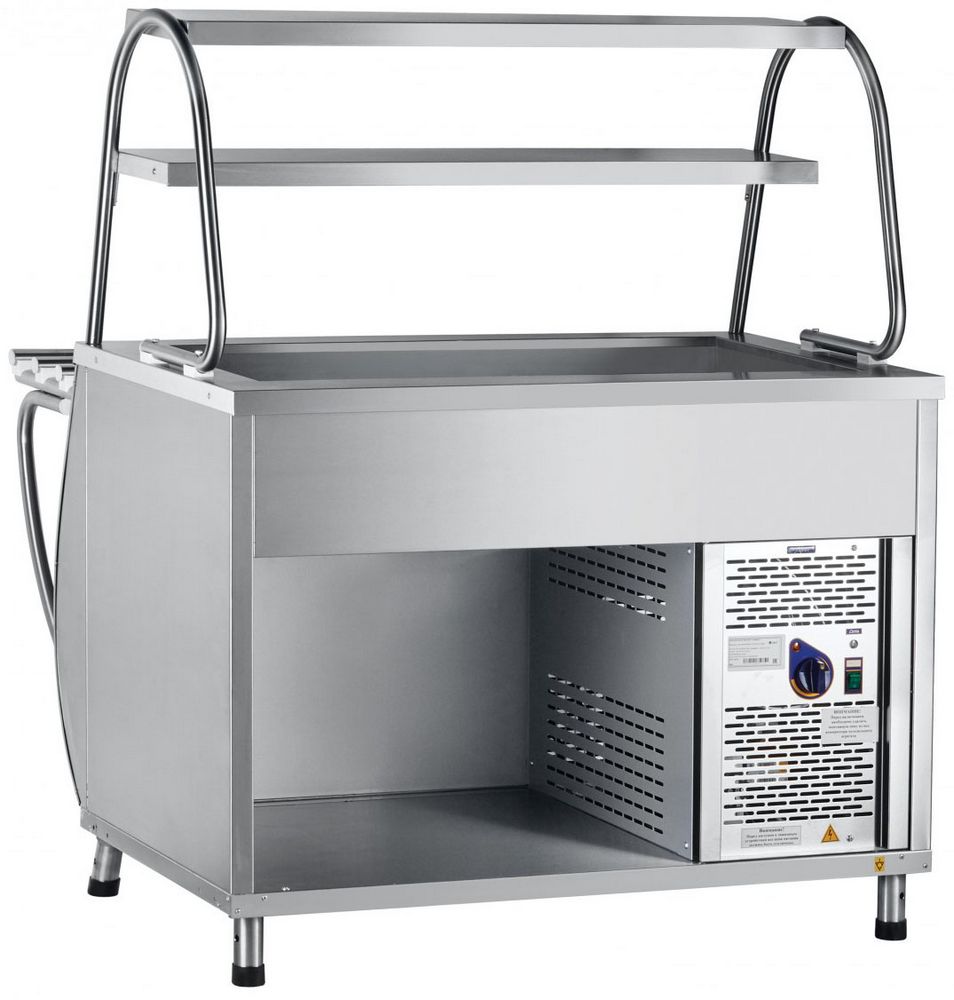 - Размещенная над прилавком двойная полка используется для выкладывания блюд и напитков, не требующих охлаждения.