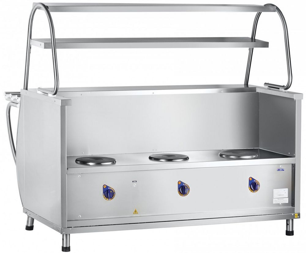- Мармит оснащён тремя конфорками.