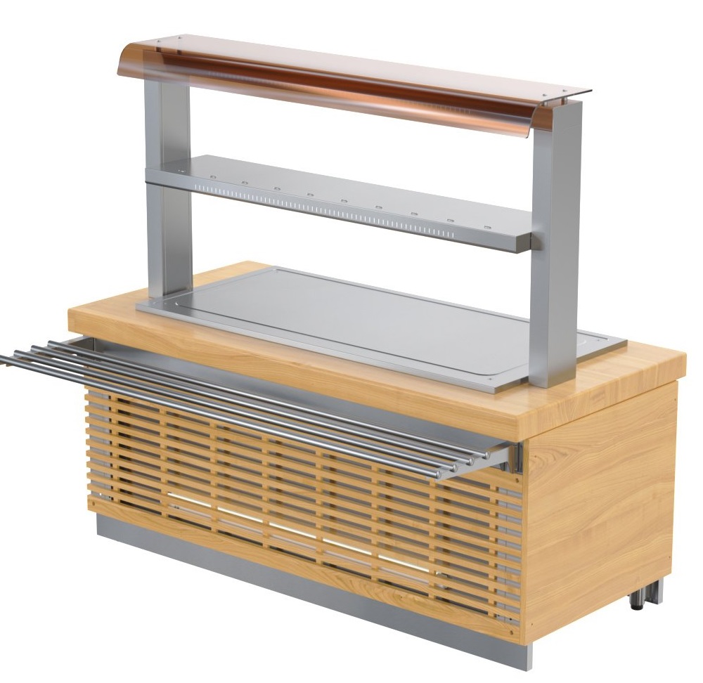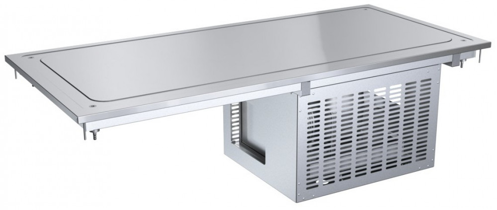 Охлаждаемая поверхность представляет собой горизонтальную площадку, которая является столешницей, изготовленной из нержавеющей стали. Напитки и продукты в фабричной упаковке или тарелках могут размещаться непосредственно на ней.