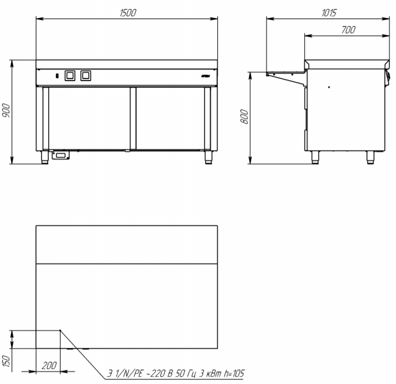 Габаритные размеры, (ДхШхВ) мм 1500х1015х880±20