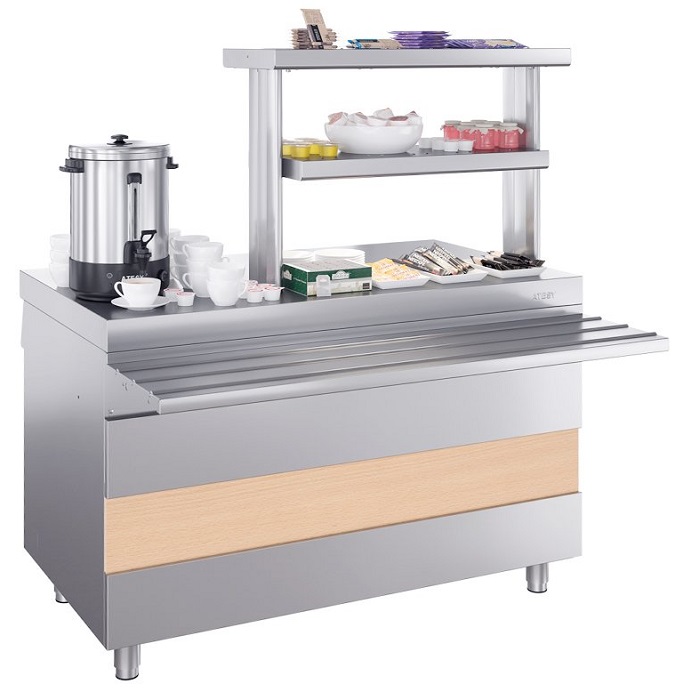 Прилавок для горячих напитков Atesy Ривьера ПГН-1500-02-О (с отверстием под полку) предназначен для выкладки продуктов и напитков, не требующих подогрева или охлаждения, а также для установки дополнительного оборудования и приспособлений.