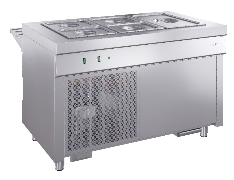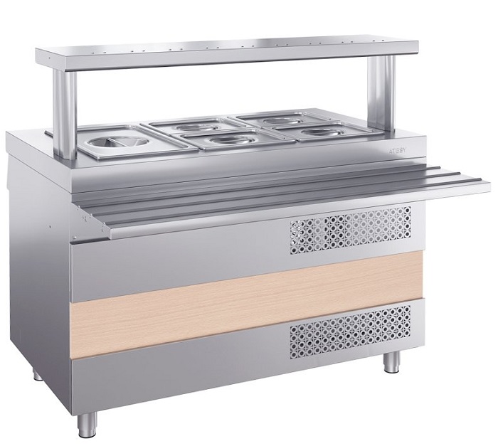 Охлаждаемый стол Atesy Ривьера ОС-1120-02-О (с отверстием под полку) предназначен для кратковременного хранения и раздачи холодных напитков, салатов, кисломолочных продуктов и других блюд, требующих хранения в охлажденном состоянии. Блюда и продукты могут размещаться в охлаждаемой ванне стола в посуде, в фабричной упаковке или в гастроемкостях.