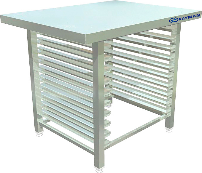 Подставка Kayman ПКУ используется на предприятиях общественного питания и торговли совместно с пароконвектоматами для хранения гастроемкостей и противней.