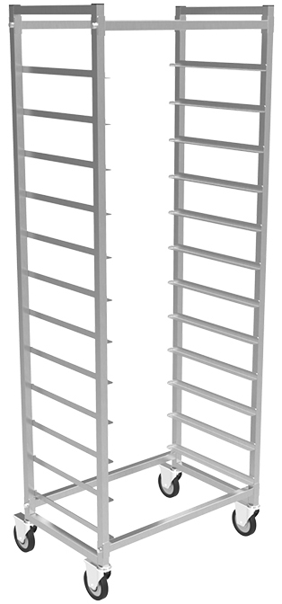 Тележка-шпилька Кобор ШПР-59/33 предназначена для технологического хранения и транспортировки до 12 уровней гастроемкостей GN 1/1 (530х325 мм) с пищевыми продуктами и кондитерскими изделиями до и после приготовления в жарочной камере.