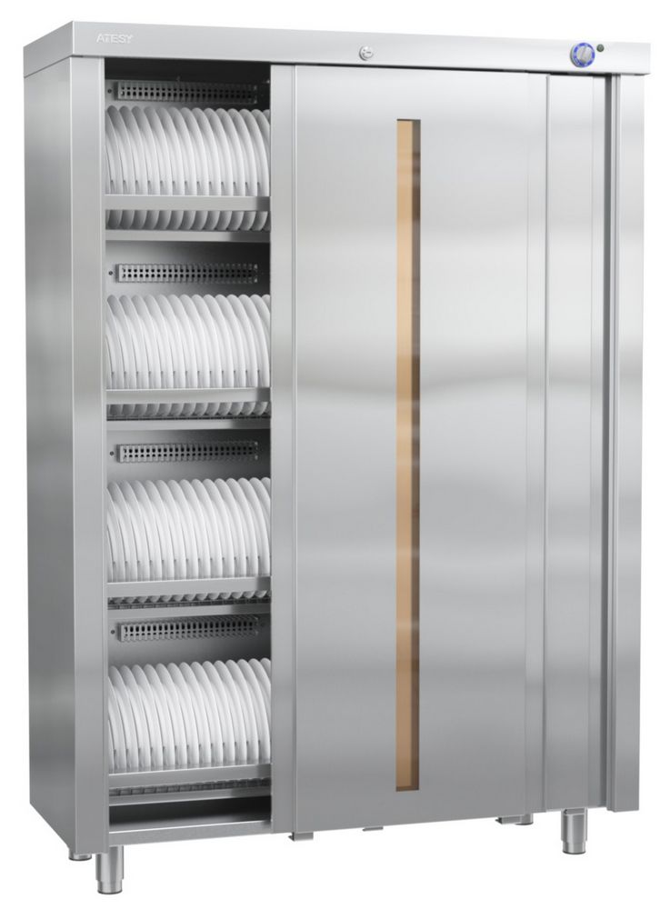 Шкаф для стерилизации посуды Atesy ШЗДП-4-950-02-1 предназначен для обеззараживания столовой посуды, разделочных досок, крышек, других кухонных инструментов на предприятиях пищевых отраслей промышленности, торговли и общественного питания.