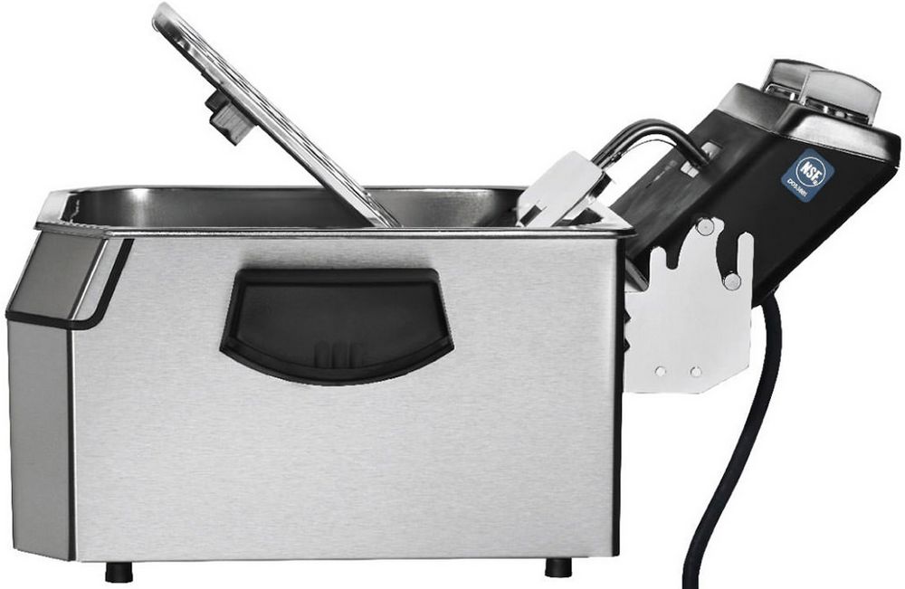 Корпус, ванна и нагревательный элемент выполнены из нержавеющей стали, корзины со съемными ручками - из проволочной сетки из нержавеющей стали, защитная крышка из нержавеющей стали.
