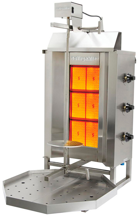 Гриль для шаурмы Ozti 3GD предназначен для обжарки большого количества мяса в небольших закусочных, снэк-барах и заведениях фаст-фуда.