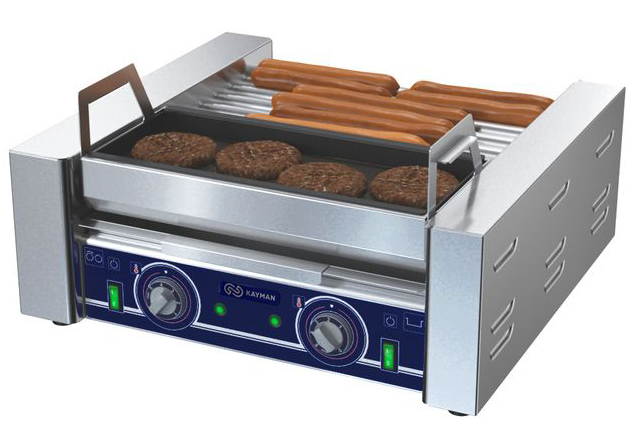 Комби-гриль для обжарки сосисок и котлет Kayman КГЭ-7-Н А предназначен для обжаривания и поддержания в горячем состоянии сосисок и котлет, используемых для приготовления хот-догов и бургеров в стационарных и мобильных точках общественного питания, в том числе и на АЗС.