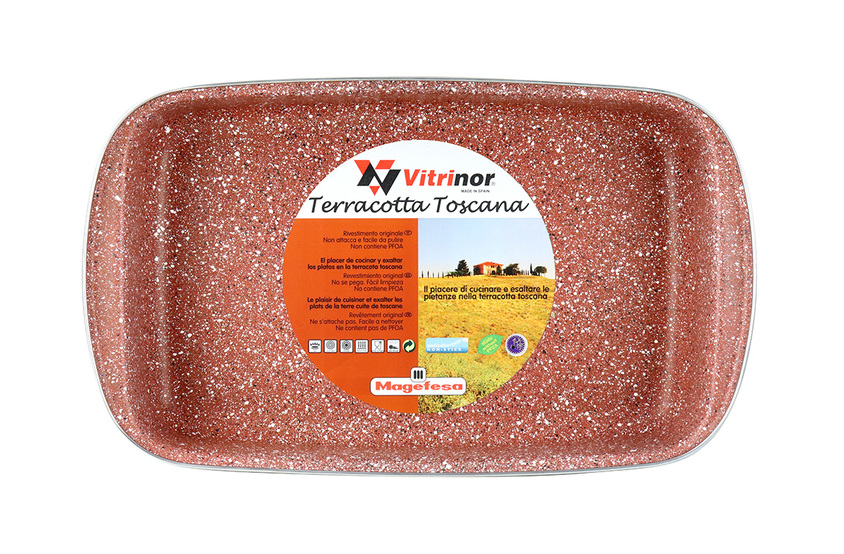 Надёжное двухслойное антипригарное покрытие формы для выпечки Vitrinor Toscana 30 обеспечивает долгий срок службы даже при интенсивном использовании. Антипригарное покрытие не содержит PFOA и безопасно для здоровья. Допускается мойка формы в посудомоечной машине. Продукция Vitrinor производятся на собственном заводе, расположенном в провинции Кантабрия на севере Испании. Вся посуда выпускаемая под маркой Vitrinor соответствует европейскому стандарту UNE-EN 12983-1.