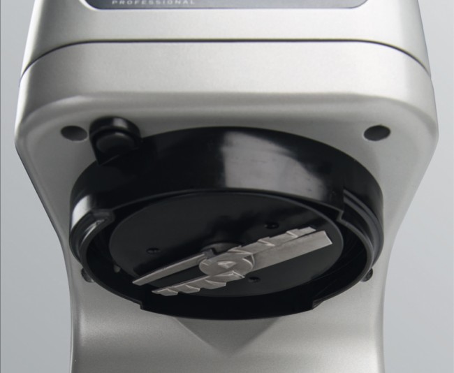 - Вставьте лезвие. Отрегулируйте в наконечнике вместе с черной крышкой контейнера