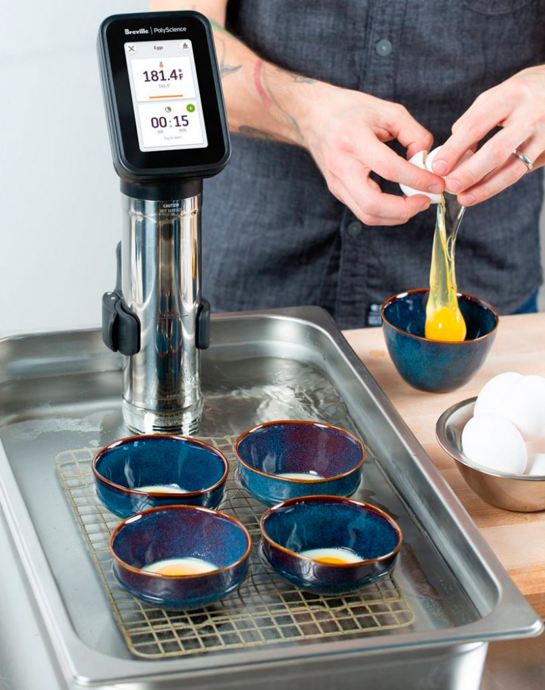 Интуитивно понятный интерфейс с инструкциями по приготовлению пищи, который упрощает приготовление в режиме sous vide за счет использования научных алгоритмов для расчета времени достижения нужной температуры и пастеризации для широкого спектра продуктов.