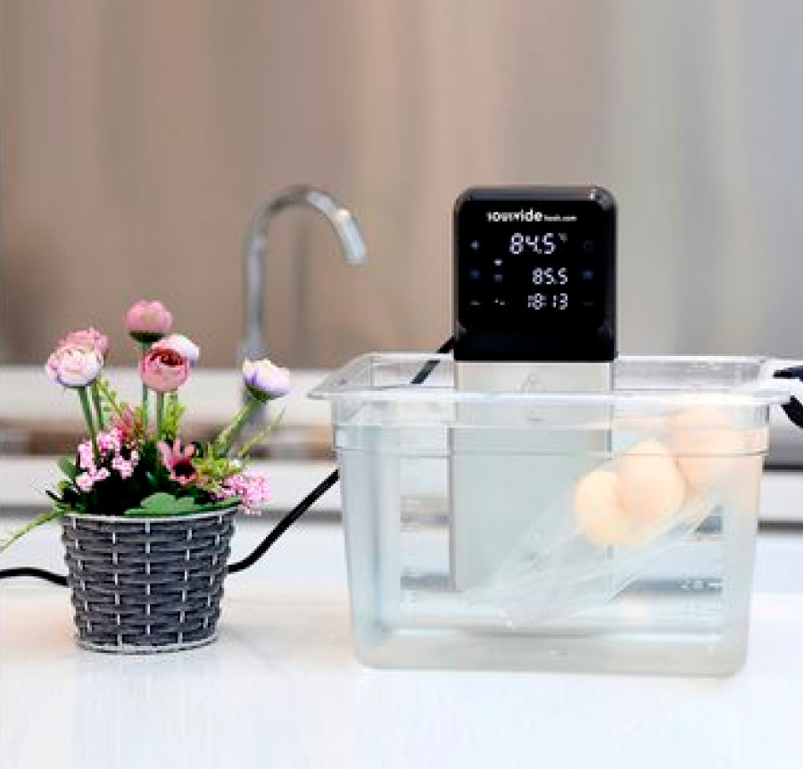 Погружной термостат SousVideTools SVT-01005EU идет в комплекте с приложением iVide (доступно на iOS и Android).