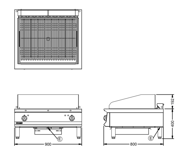 3-х сторонние шторки из нержавеющей стали защищают от брызг выделяющихся при обжаривании.