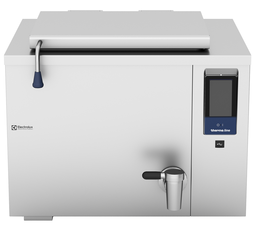 Широкий сливной кран для удобной и безопасной выгрузки готовых блюд.