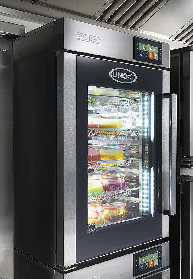 Позволяет устанавливать оборудование в колонну, предоставляя возможность одновременного приготовления различных блюд с индивидуальными требованиями к температуре, уровню влажности и времени приготовления