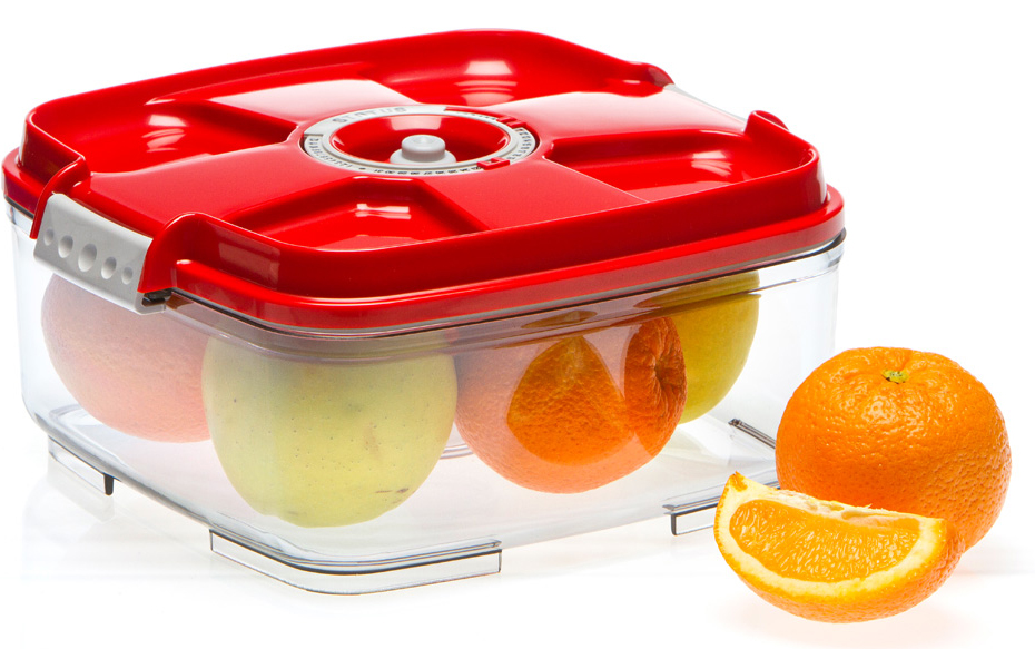 Благодаря использованию вакуумных контейнеров, продукты не подвергаются внешнему воздействию и срок хранения значительно увеличивается. Продукты сохраняют свои вкусовые качества и аромат, а запахи в холодильнике не перемешиваются.