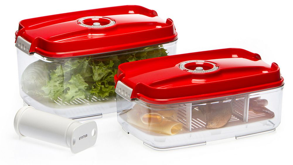 Набор вакуумных контейнеров Status VAC-REC-Bigger Red используется для компактного хранения продуктов, позволяя экономить пространство.