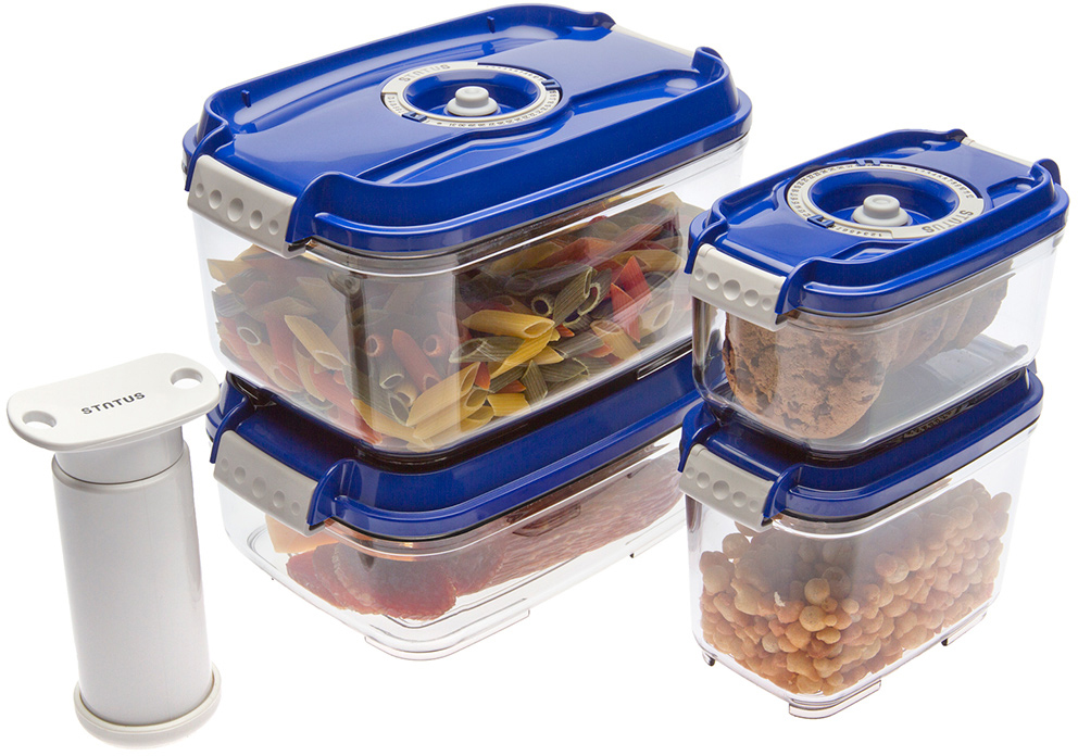 Набор вакуумных контейнеров Status VAC-REC-Smaller Blue используется для компактного хранения продуктов, позволяя экономить пространство.