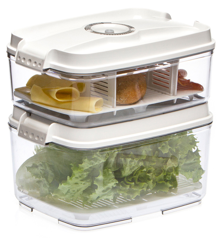 Благодаря использованию вакуумных контейнеров, продукты не подвергаются внешнему воздействию и срок хранения значительно увеличивается. Продукты сохраняют свои вкусовые качества и аромат, а запахи в холодильнике не перемешиваются.